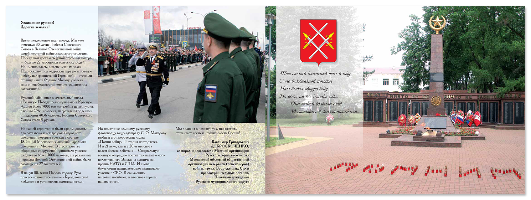 Книга издана по инициативе Совета ветеранов Рузского муниципального округа, предисловие к изданию подготовил председатель Совета ветеранов Рузского муниципального округа вице–адмирал В.Г. Доброскоченко.